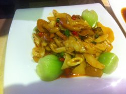 这家店就在东直门外大街春秀路,白色调的门脸,看着不大,实际里面还是挺宽敞,而且装修的也是时尚整洁。服务员推荐了吊口牛肉和水煮鱼,考虑水煮鱼还是比较油腻,所以就点了吊口牛肉,这个味道跟水煮牛肉很相似,但是牛肉要更嫩滑一些,切的也稍微有点厚,但是辣汤的味道不是很辣,就别说是麻味了。芥末虾球味道很酥,芥末味不是很重,造型也漂亮,推荐。干锅花菜咸辣口味,比较下饭,菜花是那种长菜花,比普通的菜花更加劲道一些,锅仔的,越炖越入味,就着米饭吃,真香。价格适中,2人消费130元不到。查看更多