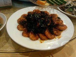 里面主要经营川菜,但是里面的菜味道偏天津人的口味,辣味的菜不多,口味也是偏甜,地方适合聚会或者婚礼,装饰的不错,菜品没有什么特别有特点的,有会员卡的话有会员价,点的蓝莓山药,很硬,蓝莓酸味大于甜味,口感不是很好,还有宫保鸡丁,甜甜的,量挺大的,里面的鸡丁炒的很嫩,还有里面的虾好吃,口味也是甜的,虾皮炸的很脆可以直接吃,属于大众菜,性价比还是挺高的