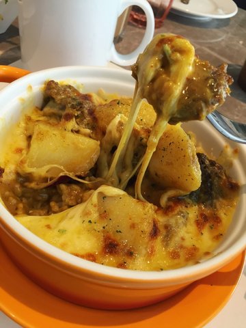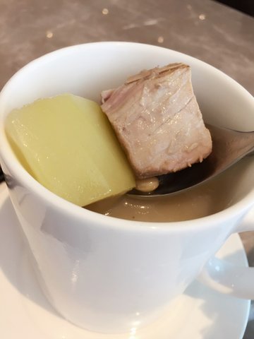 上一次来恒隆纠结了下,放弃港丽去吃小乔了。这次专门看了有午市团购,果断团两个感受下。环境感觉比大悦城店更明亮一些,上菜速度也比较快。明太子炒日式意粉,42米。这个颜色貌似是有点减少食欲,因为汤汁比较多,又不算浓稠,所以泡久了难免有点软,感觉和龙虾细面口感差距好大。好在明太子能够提鲜,奶汁咸中带甜,整体来讲还算有滋味。例汤(附送蔬菜色拉),8米。用马克杯盛汤真是醉了,刚上桌时我还以为是奶茶。当日例汤是黄豆鸡脚汤,加了猪肉和冬瓜、豆子、花生和蛤蜊,食材还是蛮丰富的,肉香浓郁。椰汁咖喱牛腩焗饭,45米。等得比较久的一道菜,事实证明是值得的。土豆和牛肉都很大块,和咖喱酱混合在一起,撒上马苏里拉焗烤而成。剖开之后是浓郁的咖喱味道,调味适中,土豆绵软,牛肉区别于家常的那种,牛腩非常软滑,肉质细腻好嚼,这样的肉肉,不多吃两块都不行呢。只可惜饮品太多,胃有限,剩下的多半份都打包带走啦。冻奶茶,8米。因为要冻饮,加了两元。一定要尽快喝完,不然冰块太多,瞬间稀释了奶茶的味道。奶茶茶香味道非常浓郁,很顺滑的口感,稍有一点涩。团购价格两人共消费74米,工作餐来讲的话还可以,如果多一些配菜会更好哦。环境大于食材的一家店,菜量不大,感觉更适合来吃个下午茶,甜品神马的都不错。…查看更多