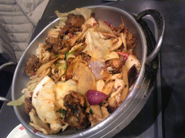 来福士大食代里的一家干锅,貌似也有炒饭什么滴.干锅大概有十几种的口味可以选择吧,看到很多人有点牛蛙干锅,但偶喜欢吃鱿鱼,所以就选择了鱿鱼干锅.可能因为不是饭点的缘故,所以没有等太久哈.鱿鱼的量还可以,蛮大只的,因为配料很多所以挺入味的,辣度OK.但坦白讲鱿鱼不是很嫩,有点老,很有嚼劲但吃久了会觉得蛮累的.里面配的藕片很脆很好吃,总的来说还可以吧,价格肯定比一般的干锅点要略微便宜点的.…查看更多