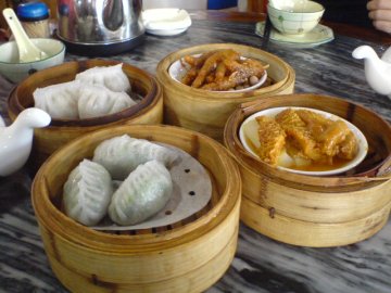 我还是第一次知道深圳还有下午还能吃早点的茶楼..不用担心早上还要早点起床去等位吃早茶..这里就可以满足你..还可以睡个懒觉呢..这家店我是第一次来的..大概中午1点多才来这吃的饭..刚进来的时候就看到没剩几个位置了..不过这里的座位也不是很多..大概不到20张桌子左右吧..而且环境比较吵杂..大家说话的声音都蛮大声的..有点闹哄哄的..这里的早点都还不错..凤爪拿过来都是热辣辣的..一点都不用担心是早上吃不完剩下的..烧卖也不错丫..比较推荐这里的芹菜饺..皮薄薄的..馅很多哦..味道蛮好吃的..不知道这里开了多久了..因为有些杯具都缺角的..这样感觉看上去会减分哦..下午还有快餐类的..点了个生炒牛肉饭..炒得很香哦..2个人吃了60多..还行吧..