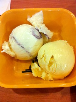 路过满记,不知什么情况居然只有2桌在用餐,平时可是人满为患呀!之前也去过几次,印象就是过甜!价格也比较高。莫非是点餐的学问在作怪?这次品尝好吃的连连点头幸福满溢。  芒果白雪黑糯米甜甜。第一口带着细碎冰碴的椰奶底,有着甜品带来的美好、沙冰带来的爽快却又避免了过甜的腻口、过冰的刺激,真是恰到好处呀!礼貌性的崴了一小勺黑糯米,没想到如此超出想象的好吃!黑糯米已然粒粒爆开充分发挥着粘糯,关键是里面居然还有小小的芋头块和红薯块!超赞!  雪山红豆凉粉。个人不喜欢凉粉,不过尝得出他家的凉粉里面没那么多明胶之类,算得上天然。红豆汤底甜度很小,可能考虑到了冰激凌很甜会中和,红豆是自己熬煮出来的大颗大颗的,不是豆沙。冰激凌抹茶、蓝莓、香草都要了,没料到香草败了,香草味不突出,反而抹茶味的很好吃,茶香奶浓冰少,甚至超出了我爱的哈根达斯抹茶。查看更多