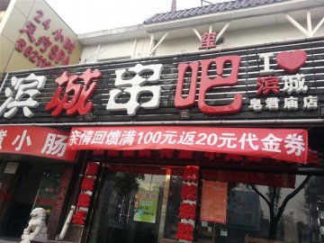 滨城串吧在皂君西里七号楼南侧(法雅商场)。滨城串吧店不是很大,他家就是各种烤 串,晚上的时候 生意更好一些,他家的烤 羊肉串、牛板筋、鸡翅、鸡脆骨都很不错,新鲜,而且 放的孜然比较多,也比较香一些。素菜也有很多,喜欢 吃烤 韭菜、辣椒、香菇等,食材比较新鲜,感觉还不错,吃满 100送20代金券。