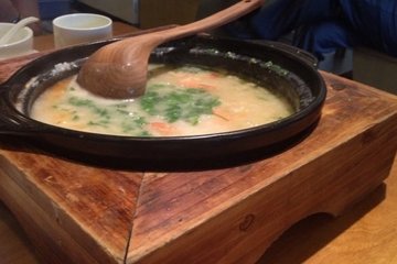 基本上来这家点上一碗粥可以吃上很久,因为一锅粥实在是太有分量了。干贝鱿鱼粥价格不菲,要198元,不过里面的干贝也是货真价实的,圆圆的一大颗,随处可见,鱿鱼比较有弹性,米粒很香,鲜味自然绝不是味精加工的出来的,够三人吃哦,很超值。…查看更多