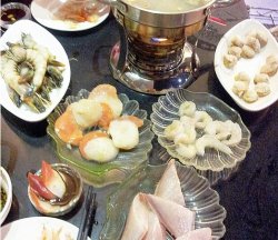 点评上团购的150元自助赶在晚上第一批吃的 担心晚的话 影响上菜速度以及缺菜的情况一上来 就把108限点的几样 全部来了2遍~ 很过瘾!特别喜欢甜虾 肉质很新鲜~一个人就吃掉了很多 贝柱+北极贝+努力虾都挺不错的至少感觉都是新鲜的 锅里烫烫就可以吃了 很鲜美~点的 新西兰肥牛+澳大利亚牛舌 不是很喜欢~ 牛肉的味道很淡 吃不出什么米道 不过BF觉得很好吃!吃完已经快撑死了 还是坚持点了6份冰淇淋~ 总算是彻底满足了!擦擦嘴巴 满意而归~查看更多