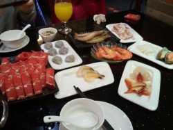 我点的是畅吃的套餐,那个套餐里面有虾,鱼,肉,还有丸子,蔬菜,豆制品,反正很多很多啊,关键是饮料还可以畅饮,真好啊,关键是还有冰淇淋啊,哈哈,蔬菜都是很新鲜的那种,我们都吃完了,但是肉类都没怎么吃,锅底也不错的查看更多