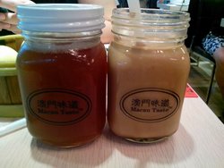 澳门味道在大悦城也是经营了一年多了,感觉热度稍微降下来点了,除了大的节假日外,平常日子基本上不用拿号等那么长时间了。店面还是比较小的,处处装潢都很用心,半开放式的餐厅,显得稍微乱了一点,人稍微一多,彼此说话声音会互相的影响。 食物价格小贵,偶尔赶上大悦城的活动这家会有七八折的优惠,店家还是推荐充值卡,消费能有一定的折扣,但是感觉实在是没有必要。 他家饮料的瓶子是可以带走的,之前看到的都是细长的瓶子,美感较强,我们去的时候只剩下好似腐乳罐的瓶子了,好在是有盖子的,权且收下带走了,现在已经成了我漱口的杯子。杯子本身玻璃比较厚,就比较沉的感觉。点了他家的奶茶喝酸梅汤。酸梅汤味道就是中规中矩的味道,酸酸甜甜的满开胃。奶茶味道满香浓的,感觉跟三点一刻奶茶的味道差不多。 一如既往地点了蛋挞,端上来是一碟三个,感觉蛋挞烤得有点不够火,蛋挞中间部分比较嫩黄,看着还算挺有食欲,咬一口可以感受到蛋挞皮的层层酥松,里面的内馅儿蛋奶味比较足,也比较软嫩。 流沙包,淡黄色的球形状点心,端上来很可爱的三个球躲在笼屉里面,萌哒哒的。咬一口,流沙包外皮柔软,里面的蛋奶味道的馅料热乎乎滴伴着砂糖流了出来,确实做到了流沙的效果。 驰名猪扒包,纸袋装着端了上来,感觉很适合外带啊。打开的猪扒包,硬面包夹着炸好的猪扒。中间被一刀切开。可以考出猪扒是煎得火候很好,外皮是微微泛黄,里面的肉质还保持着粉嫩的颜色,猪肉的纹路十分的清晰。外面的面包硬得犹如法棍,嚼起来略微吃力。里面的调料是咖喱酱和洋葱吧,味道还不错。 总的来说价位还是小贵,偶尔过来感受一下还可以。