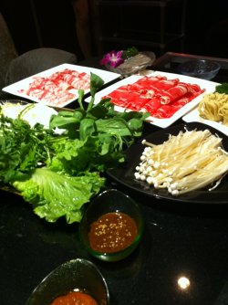 最近开始流行豆捞,很长时间没有明白什么是豆捞。如今明白了豆捞就火锅。和好朋友去吃豆捞。环境明显比以前那些嘈杂火锅店舒适安静多了。一绺的调料自助选择,都快看花眼了,贪心的我来个大杂烩,锅底辣汤锅。素的点了 金针菇、生菜、蓬蒿菜、面条、荤得有牛肉、羊肉、贡丸、包心贡丸,锅底红汤头,熬制过有很浓罗汉果、十三香、花椒等调料美味。麻辣味中带一点点中药味。素材下锅后,汤汁浸透。麻辣味带上素材特性更美味,后来锅底汤越来越浓鲜香,都盛了好几碗。