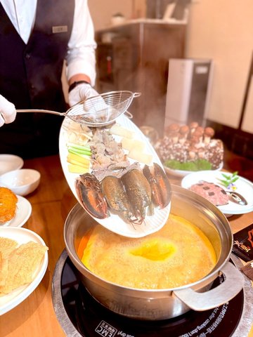 餐厅专注于海鲜火锅、铁板烧和创意粤菜🥢环境融合海派公馆风格和日式庭院设计🪷在城市的喧嚣中营造出一片静谧氛围🎐另外还提供免费的生日🎂及纪念日包厢布置🧸🎊搭配贴心的管家式服务👩🏻💼堪称“生日约会圣地”🎈🎉—🔸黄金松叶蟹 💰CNY 688🖍️店员首先喺白朱古力蛋外壳淋酒🍶然后点火🔥融化朱古力后就会见到收埋喺底嘅松叶蟹🦀蟹盖塞满一丝丝蟹肉!极度鲜甜🤩搭配脆片食用,口感更丰富🤤🔸仙鹤神针 💰CNY 288🖍️‼️每日限量10份‼️师傅手工拆骨🦴将鱼翅塞入鸽肚,圆辘辘超可爱🐡再用鲍汁慢炖,一剪开鸽肚✂️汤汁立即爆出嚟💥鲍汁浓郁,鱼翅嫩滑,鸽肉鲜美❤️🔥🔸招牌竹笙龙虾汤锅 💰CNY 398🖍️成只波士顿龙虾抌落去煮🦞汤底好难唔好饮😆龙虾肉超爽弹,龙虾膏好鲜甜🫦最后仲会加饭落去整成泡饭,米饭吸收晒浓郁汤汁🥹👍🏻大满足💯🔸自然香菇 💰CNY 48🖍️成砖香菇好打卡able📸可以自己将新鲜嘅香菇剪落汤锅入面,好有趣😆••••••••••••••••••••••••••••••强烈推荐 .ᐟ.ᐟ店员好似有多啦A梦百宝袋咁💙全程都系劲贴心!劲好笑容❤️服务真系好到震惊🤯🤯👇🏻👇🏻1️⃣一嚟就送 橡筋 扎头发🎀2️⃣见我哋嚟到身水身汗就准备 小风扇 💨3️⃣食饭之前就提供 围裙 同 拖鞋 👗🩴4️⃣见我哋影食物就即刻拎 补光灯 💡5️⃣影到手机无电就俾埋 充电器 🔋…查看更多