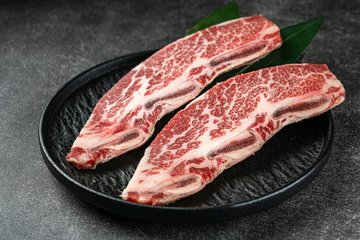 山蒜厚切猪五花 / 和牛五花肉 / 腌罐牛肋条 / 烤口蘑 / 墨鱼肠 / 薄切香葱牛舌