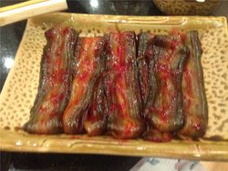 上次吃火锅,还是两个月前的事了,所以当小伙伴们周初约火锅的时候,几乎是欢呼雀跃着答应了。而这顿火锅,就成为了这一周苦逼工作和加班时的念想之一,绝不掩饰,毫不夸张!这家店的名字很有些神奇——烂板凳。何为烂板凳?也许是老板够自信,深知自己的出品可以让食客将板凳坐穿,O(∩_∩)O哈哈~;也或许是从食客的角度来说,即便是等到板凳都坐烂了,也要尝一尝这里的美味。不管如何,这个名字虽然显得直白简朴,倒还有些让人想象的空间。一如这里的环境,厚重的实木条凳、砖砌的灶头——就是最粗朴的重庆火锅模样。墙上的招贴昭示着重庆火锅的前世今生,宣扬着自己的血统纯正。早就听闻烂板凳的“八块腹肌”——重达7斤的八块金砖牛肉,当着食客的面放入锅底,随着温度的升高,牛油慢慢沉入、慢慢融化、慢慢浸润到锅底中的每一滴汤汁,翻滚的红色,简直让人忍不住食指大动!就连鸳鸯锅底也是丝毫不马虎,八块金砖悉数进入,醇厚浓香!牛肉火锅的厚重,在这里得到了充分的体现,食材在牛油中的充分浸润,让舌尖感受到的馥郁浓香确实是成都火锅的小清新所不具备的。这样的大开大合、大麻大辣一如重庆的人、重庆的事——大江东去、豪放不羁,尽情尽兴!还值得一提的是,这里的牛油锅底,辣而不燥,厚重鲜香,没有添加剂,吃后不发苦,衣服上没有味道,更健康,更过瘾!【坨坨牛肉】和牛油金砖一样霸气!事前处理并码料,下锅后不久就能入口,真材实料,口感有韧劲,有卤香味也有牛油本身的浓香味。【极品鹅肠】一根长达两米,从屠宰场直接过来,保证了新鲜和韧度。服务小妹当着食客的面剪成适宜的长度,入红汤稍微汆烫一段时间,爽脆可口,口感饱满,很让人惊喜!素菜用竹筲箕承装,非常有传统粗朴的感觉——绿色的青笋、白色的山药、黄色的土豆、褐色的苕粉,就像是一副赏心悦目的田园图画。青笋片切得很薄,入锅就好,很爽口;苕粉嚼劲好,韧劲足,是我的菜。大家推荐的【冰粉】果然不错,为了中和火锅的口感,商家还贴心地推出了加冰和不加冰两种版本。红糖浓郁,芝麻、花生碎很提味,解辣解渴,很适合夏日里的火锅。现在商家还有优惠活动,每周三,如果一桌客人全是女士的话,餐费打五折,相当给力啊!查看更多