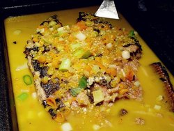 在微博看到推广,口水都来了本来以为只是吃茄子,贴心的他们还提供了他们家各种厉害的菜品。不得不说,这次的脑花比我上次吃的好吃太多~很入味,很走心!猪蹄也好棒,一点都不油腻,软糯黏牙,满满的胶原蛋白裹着花生粉和香菜!鸡翅表皮酥脆,包浆豆腐就是要趁铁板还在冒泡的时候吃,才能吃到滑嫩内馅唷茄子:家常味是泡椒+肉末的组合,口味属于大家都比较喜欢的;蒜茸味是之前吃过的,我喜欢~有种炭烤生蚝的feel;烧烤味是辣椒面和孜然等调味,但是上面有折耳根豇豆肉末好像不是很match哟烤鱼黑胡椒面很特色,就是面不入味看起来像酒吧,生意爆好,环境不错,赶紧西边开分店!查看更多