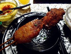 晚上8点去大概等了30小时,生意蛮好的。灯光类似酒吧,五光十色的,世界杯期间挂着各囯国旗颇有喝啤酒的氛围。【香辣味烤鱼】黔鱼,2斤多的最小。红辣椒、绿辣椒,咸淡适中,吃起来有火锅的香味。【烤茄子】茄上蒜蓉,略咸,有点水不够香。【包浆豆腐】布满海椒面,有点小辣。【烤脑花】还行,但不惊艳。【甜品类】双皮奶是用粉兑的,不美味查看更多