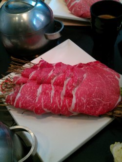 之前微博中奖的和牛套餐和朋友一起去吃的店员一开始不太清楚情况 换了好几个人后 才知道微博中奖的事情不过之后的服务和菜品的质量都不错 没有因为是免费的而打折因为是套餐 加了6块钱饮料畅饮和牛套餐果然是最贵的套餐和牛虽然只有6片 但是很大片 而且也有厚度 涮完以后还是很嫩 很多汁赞~!查看更多