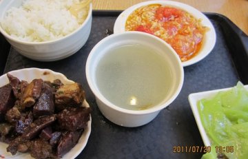 去牙防所看牙 在这里解决午饭 附近也没啥吃的了 除非走到日月光这家真素火爆啊 还弄了个蛇形通道 搞得跟世博会一样 真搞不懂这么难吃的店人气还这么旺~``喊了紫薯蒸排骨13:排骨很少 剩下都素紫薯莴笋火腿7:一般 没看到火腿嘛~``西红柿炒蛋7:貌似加了番茄沙司炒出来的 和家里炒的味道不一样冬瓜排骨汤6:这个神奇了 明明喊的冬瓜排骨汤 为啥里面会出现小鸡块? 是赚了吗? 天额~``米饭2块随便吃吃 填肚子填肚子~`` 没下次没下次!!