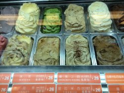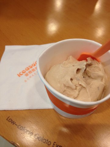 这家店开在南京西路2-88号新世界城B2楼,开在通往地铁站的转角处,店面不是很大,晚上也没什么人吃。店员蛮热情的,主动会给你试吃很多口味的冰激凌,然后再选择你自己喜欢的,这点还是蛮不错的。最后选了榛果口味的冰激凌单球,价格是26元,有点小贵。冰激凌奶味偏重,榛果味还是很浓郁的,口感很细腻,口味普遍偏甜,吃多了的话会觉得比较腻,他们家号称卡路里超低的,也不知道为什么冰激凌那么的甜腻,不是特别的喜欢。总的来说,他们家服务态度不错,冰激凌一般,随便吃吃还行。
