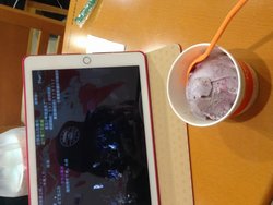 开在虹口龙之梦B2,老婆大人的对面吧,B2大家懂的呀 人特别的多 这里也不例外啦 ,还是蛮人性化的有座位,可以在那里吃也可以打包。无聊在里面随便坐坐蛮好的有好多选择所以特别纠结,选择了蓝莓口味会有颗粒感啦有酸酸的味道、个人还是比较喜欢的。还不错吧 性价比有点高 难得吃一下还是不错的