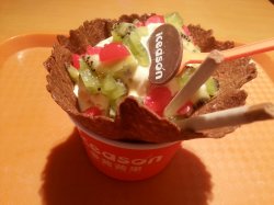 知道爱茜茜里是因为它低热量,所以就算多吃也不怕胖的呢,喜欢他们家的冰激凌面条,人气美食介绍了好多次了,我可是慕名而去的啊,冰激凌的样子很像面条,但是口感还是非常有韧劲,甜而不腻,抹茶味浓郁,上面的水果非常新鲜,和冰激凌融合在一起味道好极了,外面包裹的脆饼脆脆的,巧克力味道,一口冰激凌,一口水果,一口脆饼,真是太舒服了~查看更多