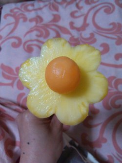 爱蒂宝的水果花篮看着很精美,各种的水果用竹签插着,拿着也很方便,而且水果都很新鲜,选材很好,就是价格挺贵的。买的小号的花篮,里面的菠萝很好吃,是太阳花的形状,中间点缀着一颗蜜瓜球,吃着清甜可口,菠萝多汁,不刺嘴,很好吃。查看更多