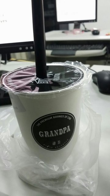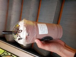 路过他家看着招牌,爷茶,我想起了周杰伦的爷爷泡的茶那首歌,进去后看见,饮料的品种还是很多,点了可可奥利奥冰透乐,是冰的那种,可可粉加冰块打,上面还放上奶油有奥利奥碎,看起来到是很好,大大的一杯,喝起来的话,因为很冰,所以显的甜味不够,可可粉放少了,冰放多了,导致一喝起来只有淡淡的可可味道,上面的奶油其实是没有味道的,所以只有淡一个字,后来放到冰咋子完全化成了水 ,变成室温以后,喝起来稍微有点甜味了,但是我这种人的口感,下次去喝是一定要多糖的,不然真心淡
