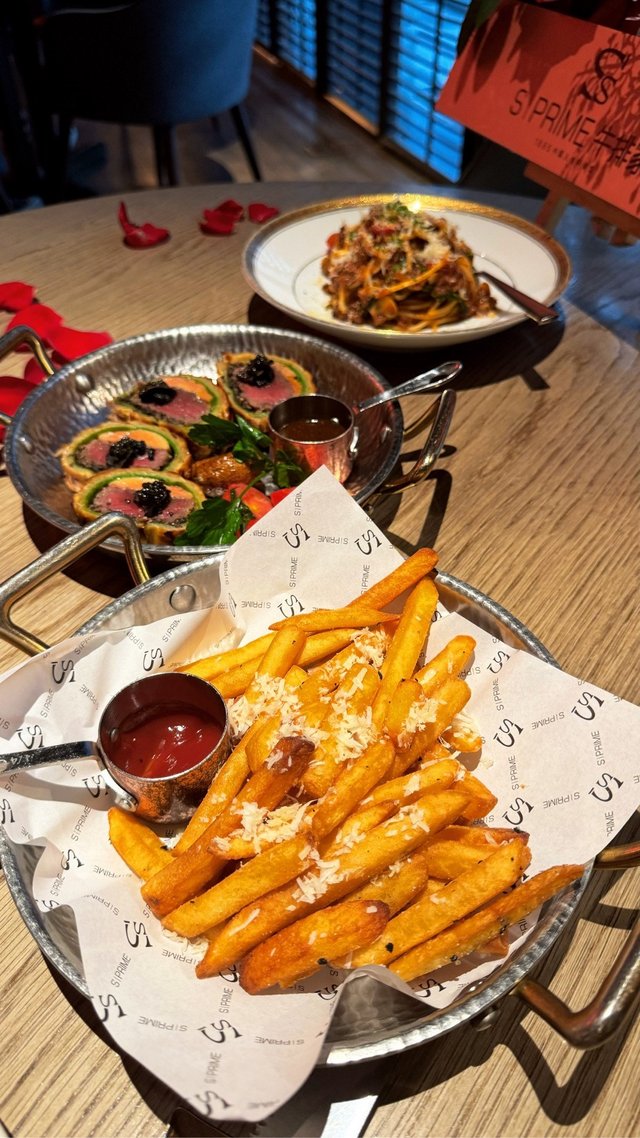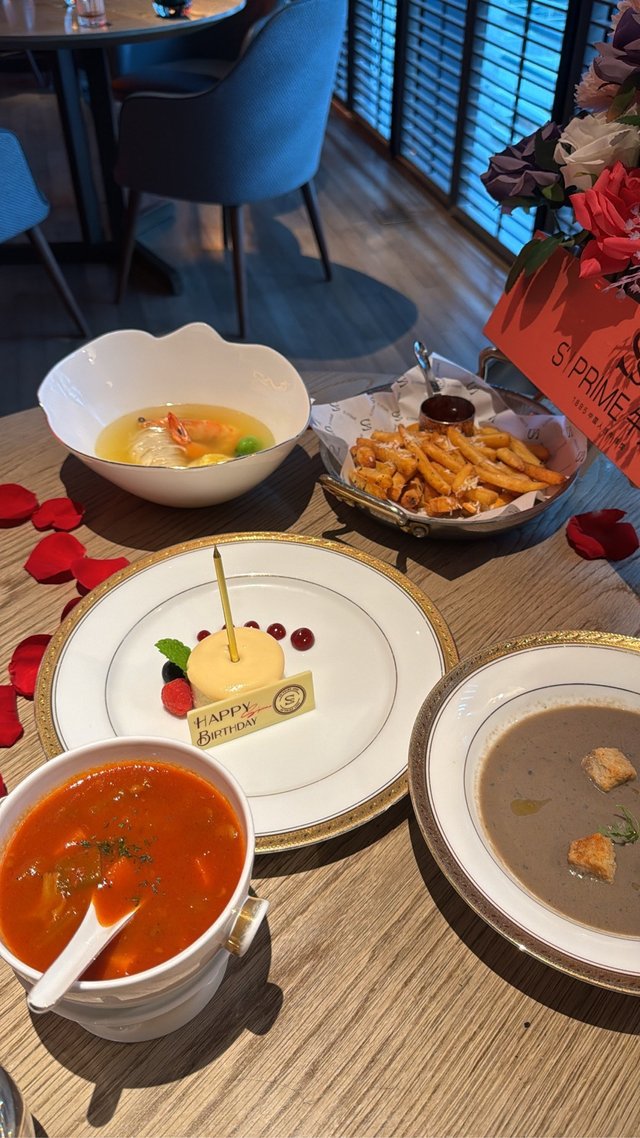 朋友給我的生日小驚喜, 安排了一間環境好,氣氛好,食物好的西餐扒房(牛排家)給我一個難忘的晚上.餐廳位於深圳萬象天地距離深圳灣比較近, 羅湖及福田口岸就遠了少少😅 門外暗暗黑黑充滿新秘感.慢慢進入餐廳已被巨高樓底及好色燈的酒櫃(外型有少少似聖誕樹)驚艷到. 下層主打西餐&上層食中餐.一張張的大小圓檯,較近門口位置都是小情侶檯,檯面擺設以花為主及有一個小型畫架寫上“Happy birthday”,好有心思的佈置. 我們一行五人被安排中形半圓卡座位,檯也不算太大. 我們叫了四人餐有前菜(麵包,和牛他他,焗法式田螺,大大塊的斧頭扒,炸海鮮拼盤,手工Pizza,甜品是tiramisu. 還有,餐廳準備的小蛋糕.這本無酒精飲品,外表美觀,紫紫红红再加上杯上的裝飾. 真的不想這麼快喝完. 要影多幾張靚照片.廚房是採用透明半開方式設計, 絕對不含預製菜式🤣透明度高之外還是很衛生.牛排家地址:深南大道9668号深圳萬象天地L5層交通:深圳地鐵高新園站A出口萬象天地#深圳美食日記 #深圳美食探店 #深圳餐廳推介 #深圳扒房 #深圳牛排 #深圳打卡 #深圳生日約會餐廳 #深圳生日餐廳首選 #深圳生日好去處 #情侶拍拖好去處 #深圳萬象天地 #牛排推薦 #牛排家 #隱廚 …查看更多