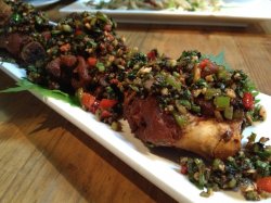 开在胡同里的一家主题餐厅。还未进餐馆,先望见一片绿油油的草坪,给人很清新的感觉。夏天在室外进餐是不错的选择。听说这里还经常会举办草坪婚礼。餐厅里放着音乐,环境也不错,透过玻璃看着外面的草坪,心情大好。这家菜主打贵州菜+东南亚菜,这次主要尝试的是贵州菜,感觉还不错。西南金牌猪手是先蒸后烤的,味道很不错,猪手很有嚼劲。鸡汤豌豆尖也挺鲜的。另外,她家送的冰粉味道也不错,酸甜可口。查看更多