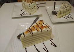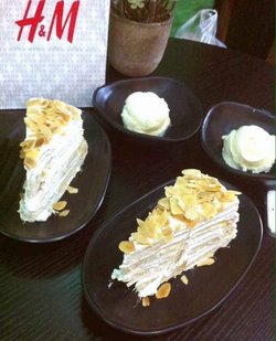 现在越来越喜欢吃榴莲有关的甜品了,快达到无榴莲不美味的境界了。千层蛋糕看上去就是密密麻麻的一层有一层,层次感几乎是肉眼可见的,上面铺了一层满满的杏仁片,味道很香脆,榴莲蛋糕味道很浓郁,还吃了榴莲布丁,非常的爽滑,比起一般的布丁量也是明显的多。查看更多
