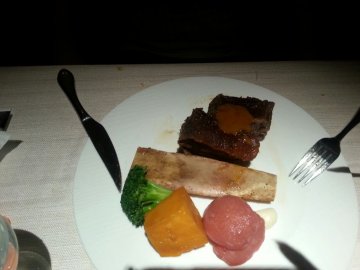 都是set的形式,就不多说了。现在上海的牛排店越开越多,如果真要说这里的牛排有什么特色的话,就是这里的牛排基本上不会有几分熟的概念的,几乎上来的都是全熟的,吃不惯5分熟牛排的人,这里可能比较适合。如果想要个性化点,比如要3分熟的,5分熟的,可能就有点难度了。牛排小小一块,女孩子没什么大问题,如果男生的话,可能吃肉有点不够,不过加上其他配菜,前菜和点心,也是可以饱的。…查看更多
