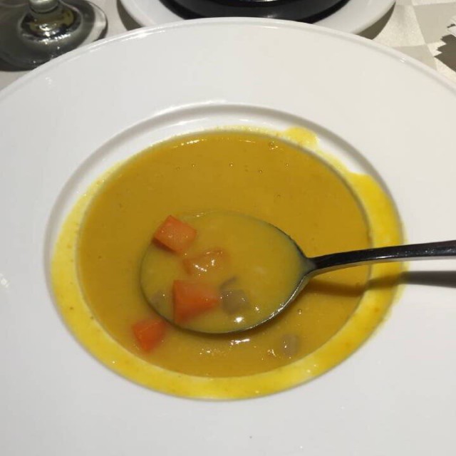 这家店就在置地星座半地下的一层,环境很优雅,布置的挺精致。他家也是套餐,338元一位,服务员会按照西餐的顺序上菜,服务很得体。他家的菜品做的相当精致,最后上的甜品简直经验了,这道香芒轻乳芭菲做的真挺漂亮的。芒果软滑细嫩,有淡淡的芝士香味。上面笼罩的东西也挺好玩的,都有点舍不得吃了。