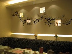 在樱花园西街8-3号(近化工大学), 对外经贸,装修的确实很有味道,尤其墙壁上各种图案的贴纸更彰显了“玩”这个字。来这里吃饭很轻松,但是菜上来对胃来说就不轻松了,总的来说就是偏咸。小煎鸡是大家公认做的还不错的一道菜,青红辣椒里有可爱的小小的鸡丁,鸡肉不是特别滑嫩那种,是比较有韧劲的口感。毛血旺,我觉得不该叫毛血旺,做法很奇怪,边加热边吃的,有点儿像麻辣烫?说不出来的感觉。查看更多