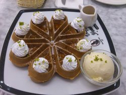 非常小资的一家下午茶店,刚开张的时候排了很多人,不过现在稍微好一点了,这家环境很欧式价格也有点辣手去过一次估计觉得性价比不高就不会再去了,点的是法芙娜巧克力松饼,别说用了法芙娜的巧克力做出来的松饼味道就是浓郁配上冰激凌的冰爽和奶味更突出了可可的香醇。…查看更多