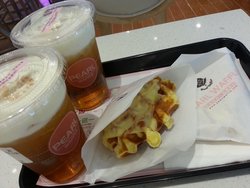 环境挺好的,老板娘是苏州人。套餐是一份元气芝士和一杯奶盖绿茶。元气芝士味道不错,早上去的时候早饭没吃,觉得好香啊,外面有点脆,里面是软的,有点甜有点咸。难得吃到好吃的松饼,一般咖啡店饮食店的松饼都不太好吃。奶茶绿茶味道很清爽,是茉莉花茶的味道,就是冰块很多,太冰了,如果以后能询问客人要不要冰块更好。开业的每个礼拜都有不同的优惠活动,趁着开业多尝几个味道。服务态度不错。