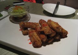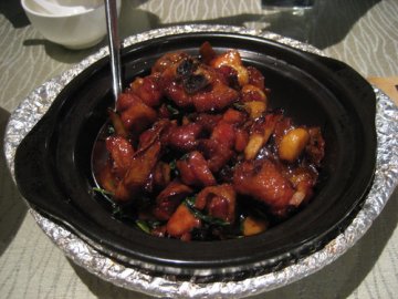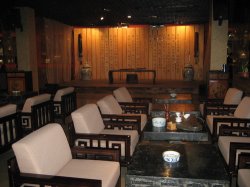 位置还比较好找,从亮马桥顺着新源南路走到头,渔阳饭店后面就是。这里环境没的说,非常雅致,一进门就有个水池,里面养着金鱼。吃饭在二楼,装饰的也是古香古色,晚上还有弹琴表演,不错~~~下面介绍一下我们点的菜品:三鲜腐皮鸭卷,外面是油炸的,好像是腐竹皮或豆皮一类的,里面有鸭肉、香菇等等,端上来的时候不是很热,是温的,所以外皮不是特别酥脆,一般~~~青菜豆腐汤,我感觉这汤像鸭汤,不过里面的青菜有股土腥味,尤其凉了以后更明显,算是个败笔了~~~三杯鸡,这道菜可是让我们等的花都谢了,快有一个小时了才给端上来。头一次吃这道菜,不知道是不是正宗,味道有点重,甜咸口的,倒是很下饭,还可以~~~菠菜汁煎饺,饺子皮是绿色的,里面有胡萝卜、粉丝、豆腐干,味道很淡。搭配的醋很独特,里面似乎加了话梅,醋里有种话梅的味道,第一次吃,很新鲜~~~对了,送了两碟小凉菜,其中那个豇豆还不错!总体来说,菜量不是很大,价格有便宜的、有贵的!唯一不满意的地方,就是这个上菜的速度,未免让我们等的也太久了吧!这还没坐满人呢,就得等这么半天,以后还怎么去啊!吃顿饭让人急的慌,建议商家好好改进一下后厨的做菜速度吧~~~