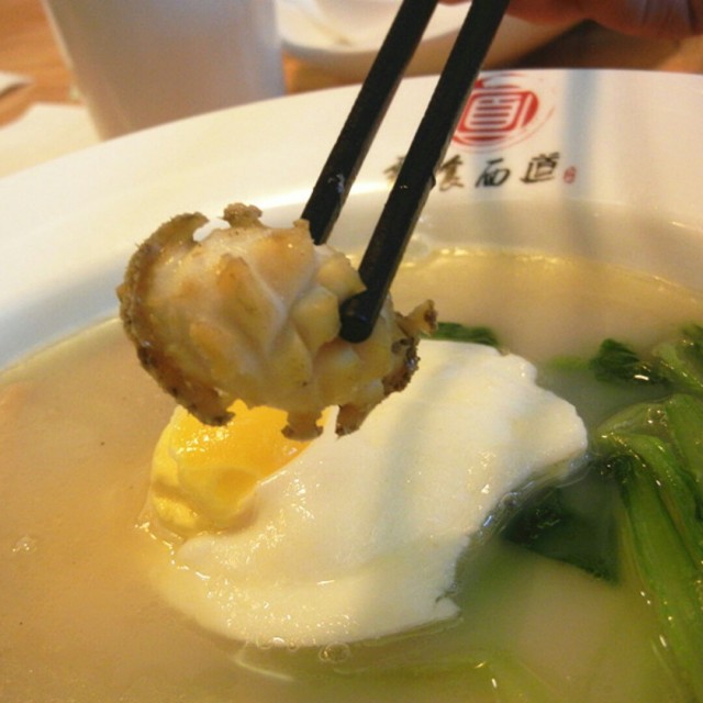 20131224with小敏敏和校长,日月光第八站下午大概5点多了,外面好冷,一开始还跑错方向了,还好及时发现店里空调开的非常暖和,吃吃面就有些热了来了都来了就点了最霸气的甄食面道175米,里面有澳洲龙虾半只、鲜鲍鱼一只,辽参一个,一些菌菇, 高汤配上黄绿双色蔬菜面他们家的山楂茶味道很不错,很开胃,别家倒是没喝到过,感觉店家蛮用心的面的汤底不算是特别浓郁,但是却有最真实的鲜味,让人小小的欲罢不能,面量也挺大的,3个人吃的很饱,服务员还问是否要加面= =龙虾鲍鱼感觉就是小噱头,可能我更爱这个汤头吧~总之店员很热情,面感觉还需要加强下味道,其实2,30左右的面也是有的,有空再来试试吧~…查看更多