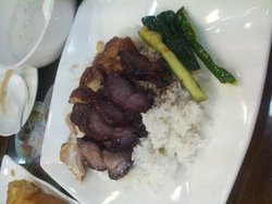 工作日饭点的时候,其他店生意都很好,基本都爆满了,只有这家还有一些座位,点了双拼饭,可是只有叉烧和烧鸭,叉烧感觉有点过甜了,烧鸭还不行,味道正好,饭还是有一点冷的,饭都没有吃完。虾皇饺,感觉就是面粉掺的,虾肉的肉质感也不是很新鲜,感觉放了很久很久。星洲炒米粉也是非常得一般。只能随便吃吃,桌上贴了很多得优惠信息,可以买团购券等,算下来是人均30元不到。