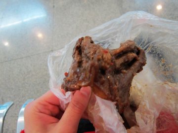 是朋友超级爱的店,每次经过都必定要拖着我也去买上点鸭脖鸡尖撒的。突然看到有鸭头卖,顿时也心动了,立马也打包了一个。不过5元一个的价格还是让人觉得有些小贵额。鸭头只有颈部和颊部有很多嫩嫩的肉,其它的都是皮和骨头额,但是要吃的就是咀嚼的那个鲜味和劲道。微辣的口感让味觉跳跃起来,真是越啃越香越啃越鲜哦。毛也拔的很干净哦,赞记!…查看更多