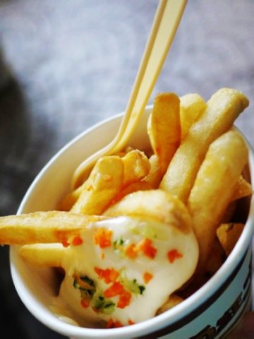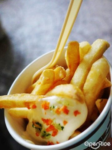 本身我就超级爱薯条,经常会去吃KFC,M的薯条,不过那种薯条就只能蘸番茄酱,也没有什么别的特色,这里的薯条特别宽和粗,有很多可以选择的蘸酱,沙拉、芥末、芝士口味的,我的话最喜欢芝士口味了,这边的薯条都是现炸的,所以热腾腾的薯条配上浓郁的芝士酱口感还是很不错的,喜欢吃薯条和芝士的朋友千万不可以错过哦…查看更多