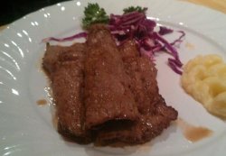 真是没想到这么久才会来这家店,是朋友推荐过来的,正好赶上刚下完雪,真是不好找,在俄罗斯大使馆附近,来吃俄罗斯菜的人真不少,话说北京俄式餐厅的真不多,这家店以性价比高闻名,但是店里面的灯光实在是太暗了,拍出来实在不清楚,大家凑合看吧,推荐尝尝红菜汤,牛舌。人均消费要80左右呢,个人觉得也不是很便宜哈。煎牛舌上来了,大家都傻了眼,只有三片,但是真心很好吃,牛舌很厚实,入口容易嚼,做的很入味,个人感觉不用再增加其他调料了,一级棒。查看更多