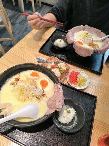 #猪同鸭讲▫️🔍 白杜谣156RAMEN·鸡白汤拉面(Halo店)📍 深圳桃园路260号HALO广场四期一层L1-20号铺▫️📝 ★★★★★ 👍▫️▪️▪️▪️▪️▪️▪️▪️▪️▪️▪️🤩真系完全估唔到大陆都有媲美日本质素嘅拉面店🏅非常高质,完全感受到用心制作❣️▪️▪️▪️▪️▪️▪️▪️▪️▪️▪️▫️【 豪华叉烧鸡白汤拉面 】 ¥58🥩好多块慢煮叉烧挂咗喺碗边,卖相非常吸引🤤 🍜据称汤底绝无添加味精,主要靠盐调味,用鸡骨熬制十几个钟而成🐓,啲人话汤底系拉面嘅灵魂讲得一啲都冇错❗▫️【 泡泡鸡白汤拉面 】 ¥44🍜汤底同上面𠮶碗一样,用打泡机喺上面打咗啲气泡🫧增加口感,配埋糖心蛋劲流心🥚🍚免费任加面底或白饭,面条滑身,都系自家制出品,非常有诚意🫶▫️▫️完!…查看更多