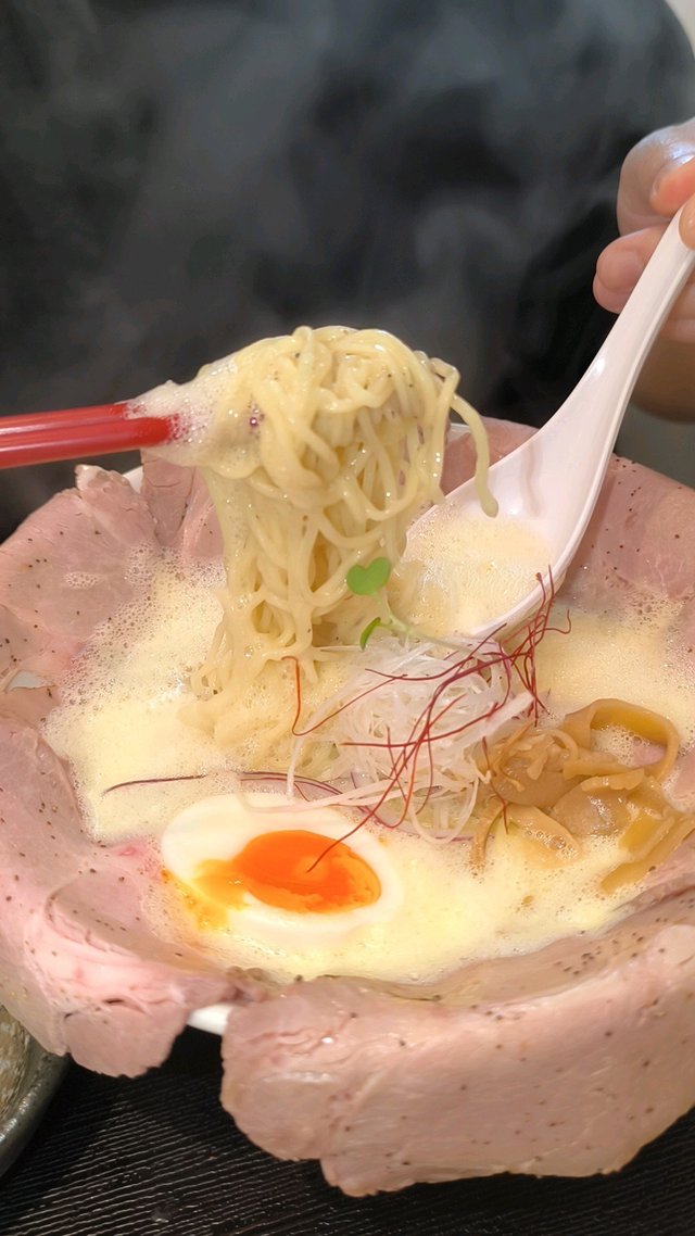 #豬同鴨講▫️🔍 白杜谣156RAMEN·鷄白湯拉面(Halo店)📍 深圳桃园路260号HALO广场四期一层L1-20号铺▫️📝 ★★★★★ 👍▫️▪️▪️▪️▪️▪️▪️▪️▪️▪️▪️🤩真係完全估唔到大陸都有媲美日本質素嘅拉麵店🏅非常高質,完全感受到用心製作❣️▪️▪️▪️▪️▪️▪️▪️▪️▪️▪️▫️【 豪華叉燒雞白湯拉麵 】 ¥58🥩好多塊慢煮叉燒掛咗喺碗邊,賣相非常吸引🤤 🍜據稱湯底絕無添加味精,主要靠鹽調味,用雞骨熬製十幾個鐘而成🐓,啲人話湯底係拉麵嘅靈魂講得一啲都冇錯❗▫️【 泡泡雞白湯拉麵 】 ¥44🍜湯底同上面嗰碗一樣,用打泡機喺上面打咗啲氣泡🫧增加口感,配埋糖心蛋勁流心🥚🍚免費任加麵底或白飯,麵條滑身,都係自家製出品,非常有誠意🫶▫️▫️完!…查看更多
