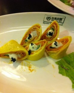 百万庄园牡丹园地址:海淀区花园东路31号牡丹宾馆1楼 百万庄园应该是挺早的一家店了,喜欢这的蟹子手卷,皮好像蛋卷成的,里面有蟹肉、黄瓜、沙拉、蟹子,嚼起来那感觉,香〜 奶汁什锦杂拌。口味不错。分量不大,很爽口可以吃吃。鸡脆骨我最爱 嚼起来咯吱咯吱的,很有嚼劲 还微微的辣,薯条和麦当劳有一比 外焦里嫩饮料荔枝芦荟,很好喝,酸酸甜甜的蛮好喝,也能解解辣。主要的这里面比较幽静,环境还好,如果追求西餐质量的,这里不是个特别好的选择查看更多
