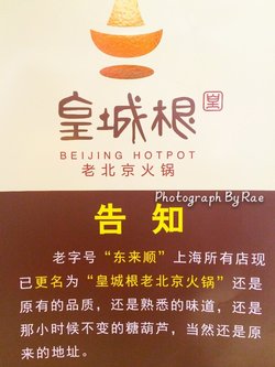 前段时间跟爸妈去了帝都旅游烤鸭是吃到饱可是火锅却因为行程很赶而木有吃到尽兴回来以后,西兰花先森为了满足本吃货于是找了一天去拔草了来自帝都正宗的老北京火锅【皇城根】他家地址是在长宁区宣化路300号华宁弘基生活中心4楼,靠近定西路口坐地铁的话是坐到中山公园站,不过从地铁下来走过去还是有点路的,要好几个路口呢他家本来是叫【东来顺】取“紫气东来,一顺百顺”的意思现在引进魔都,改名叫皇城根了店里提供的毛巾,2元一份店里的布置还是很有古韵的红色的装饰门还有吊灯,好喜庆的感觉西兰花先森跟我坐的是4人桌貌似转了一圈也没有看到有大圆桌不知道人多的话是不是需要拼桌才可以坐得下他家现在有4家分店分别是在淮海中路、徐家汇、浦东张杨路和我吃的这家中山公园倒都算是比较人气的商圈拿来点菜单扫一眼,工艺景泰蓝火锅还挺噱头的配菜里也有几个貌似是他家独有,于是点了几个尝尝鲜他家的餐具很漂亮,蓝黄相间感觉很有皇家范儿先上来的是调料的辅料香菜,葱,特制酱,辣油,还有一个忘记是什么了【涮肉调料】的话是10元一份可以把刚才的辅料拌在里面一起蘸他家的腌蒜瓣真的超级好吃我本来不吃大蒜的,都觉得味道很好【工艺景泰蓝火锅】上桌啦~~小锅:20元,中锅:28元,大锅:38元样子的确是很有特色端上来以后服务员会往里面加清汤这就是跟四川的麻辣火锅区别最大的地方锅子的花纹的确很漂亮华丽丽的龙图案~~帝都的气势就体现出来了水开了,那就该上涮羊肉了他家独特的【一品太阳卷羊肉】67元一份摆盘超级霸气~~性价比还挺高的稍微烫一烫,蘸着他家的独特酱料,味道真的不错【特色羊蝎子】大份:98元满满的一大盆,分量很足可以看到上面的肉还不少羊蝎子的酱香浓郁,肉质酥软,非常好啃【特色羊肉串】5元一串算是比较普通吧也可能是前面的涮羊肉和羊蝎子太过经典羊肉串的味道就被比下去了【生菜、大白菜、冬瓜、白萝卜】荤的总要和一些素菜搭配,他家在这点上还是很人性化的蔬菜可以半份半份的点,半份的话一个品种大约是6-7元左右蔬菜浸在火锅汤里最是吸收鲜味,而且也解了油腻饭后来个点心【特色牛肉煎包】4元一个肉还算大块,味道也不错,不过我觉得有些油腻最后是每桌按人头免费赠送的老北京糖葫芦样子挺可爱的~~酸酸的山楂外面裹着糖浆其实应该在饭前赠送,先开开胃~~【总结】在铺天盖地的四川麻辣火锅里他家的清汤火锅倒是显得独树一帜而且环境、餐具、菜品之类的也有自己的特色另外服务也不错一顿人均约100元左右,稍微有些偏高不过现在DP上有午市的代金券85抵100元,每天11:00-16:00可以用Read More