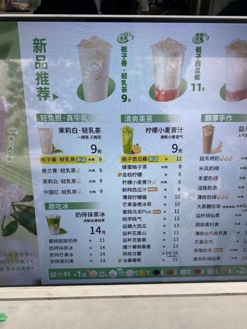 益禾烤奶 / 泷珠奶茶 / 禾风奶绿 / 益杯烧仙草 / 蜜桃乌龙 / 金桔柠檬