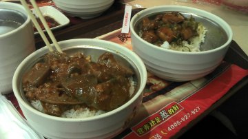 中式快餐,味道其实也不错。平时比较常点的是酸菜卤肉饭,还有茶树菇老鸭汤。酸菜卤肉饭,卤肉的口感很好,虽然微咸微油,但是配饭很好。茶树菇老鸭汤,汤头的味道还是比较鲜美的,茶树菇的香气也不错。人均消费在二十五元左右,性价比还是不错的。…查看更多