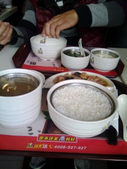 真功夫 地址: 朝阳区东三环中路39号院24号楼建外SOHOA座0105号商铺这是我和朋友吃的双人份套餐50元,是真功夫原蛊蒸饭。说实话量不足 ,倒是看起来很多的样子。不过菜的味道很是不错呢,很香哦。米饭也是,很香呢,打开盖一闻就很是香呢,这大白米饭。嘻嘻,这么一大锅。查看更多