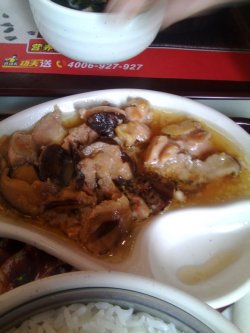 买了外带回家吃的,要了一个排骨的套餐。一直比较喜欢吃他家的排骨套餐,排骨比较小,做的颜色也比较喜欢,关键是汤汁拌米饭真的好好吃。套餐里还有个乌鸡汤,比较清淡,没什么油,比较不错。还有个玉米,我就纳闷,为什么不能是生菜呢,之前在火车站吃的也被告知只有玉米粒。查看更多