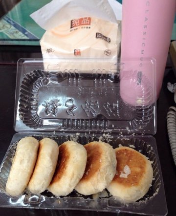 这家电视里介绍过了,路过正好买一些回去,排队都是叔叔阿姨居多,馅饼口味好多,有椒盐,花生,绿豆,芝麻,椰奶的等等,买两盒便宜点,十二元,选了椒盐和椰奶口味的,椒盐口味的很赞,皮酥酥的,咸咸甜甜很好味;椰奶的也不错,甜甜的有奶香味。