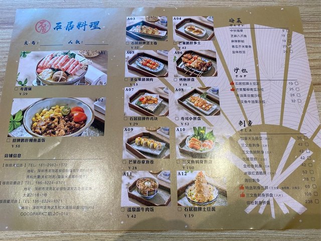 石居料理 (龙岗星河WORLD·COCO Park) (深圳) 网址: https://s.openrice.com/KtLS0W03L9S00 地址: 深圳龙岗区坂田五和大道与雅宝路交汇处星河WORLD·COCO Park L2层L2C-019号铺 电话: +86 18682248371