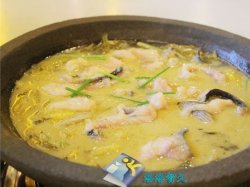 朋友看到美食节目的介绍,说这家店离我很近,于是大老远的(从浦东)赶到这里,拉我吃石锅鱼。如果没他告知,我还真的没在意过这家店呢。他家的店门小有点吸引力,进去之后看见是一间长方形的空间,左右两面墙上用竹帘代替了墙纸,最显眼以及最鲜艳的当然是店内墙上描绘的那柱盛开的梅枝,我喜欢。当然要点石锅鱼了,鱼片伴着沸腾红火的汤底果然是被盛放在石锅中,不过感觉这石锅并不是很厚。鱼肉用的是青鱼,个人不是很喜欢青鱼,刺多而且鱼肉不够嫩,但相对的,它的肉质也有一种厚实的感觉,入味之后会觉得很实在。鱼肉吃完了就可以点些其他的配菜了,虽说是鱼羊鲜,但我们没有点羊肉,只是点了些蔬菜,店家推荐的千叶豆腐,不知道其名何来,感觉品相介于冻豆腐和白豆腐之间,在锅内涮的时间越久,味道越好。烫底本身的味道就很浓郁厚重,所以基本不需要蘸料了。
