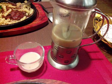猫子说这家的牛排很美味,带偶过来尝一下偶点的是招牌牛排,猫子让偶选的七成熟,浇上黑椒汁后,鲜嫩的牛肉果然很美味猫子选的是招牌饭,里面的牛肉切成了条,饭里还添加了番茄酱,很开胃的样子套餐附送的原味奶茶很香浓,意犹未尽的感觉…查看更多